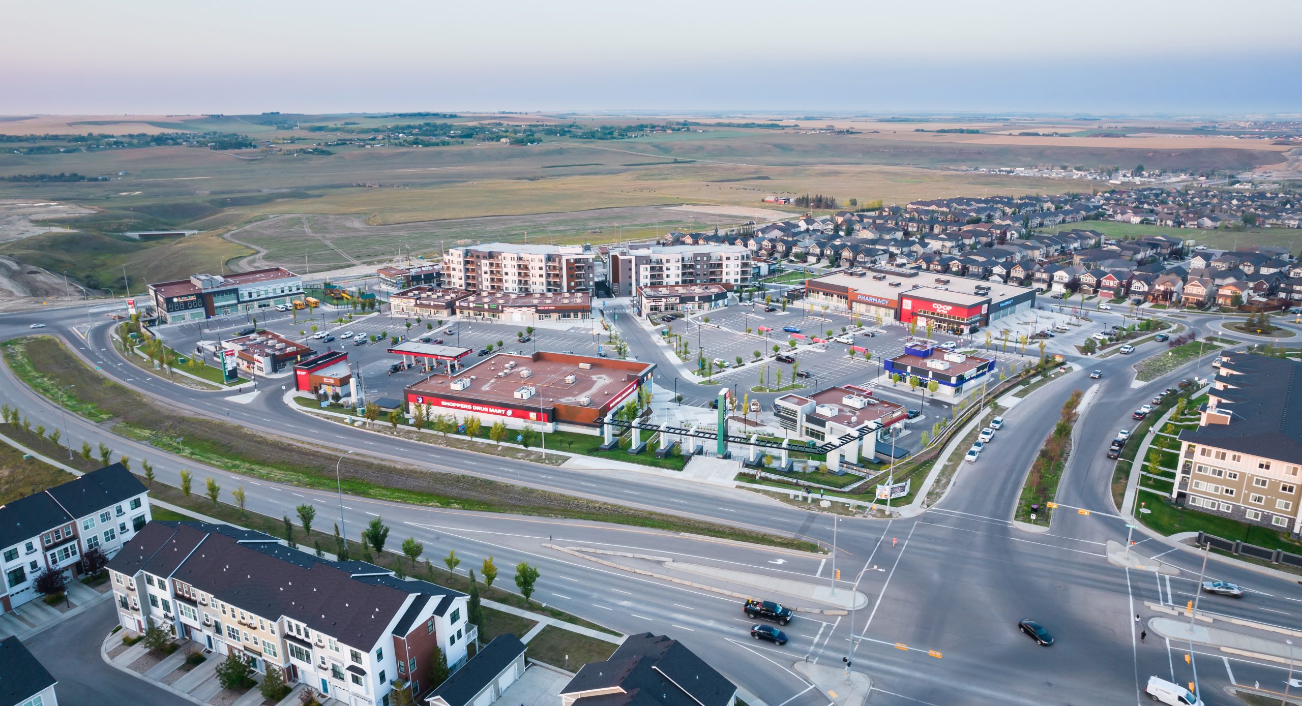Located within the heart of Symons Valley, Sage Hill Quarter sits on a seventeen-acre site with terrain that drops approximately 60 feet from one end of the site to the other. Our team used slope adaptive techniques to minimize the impact on the environmental terrain. Streets, buildings and parkades are embedded into the existing topography and retain steep conditions of the slope.